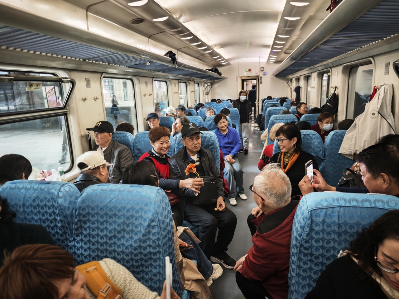 3月14日“武汉东至武汉东”普速环线列车率先开行,全程票价仅6元,一票游览武汉三镇,亲民票价、便捷行程和独特观光体验,客流持续火爆、一票难求。此后为回应广大市民需求,武铁迅速延长了开行日期、将车厢从7节加挂至12节、推出久违的售货小推车、增加沿途景点的语音播报,又于3月21日增开“武昌至武昌”普速环线列车。“听劝式”升级受到广大市民和游客的青睐,截至3月31日普速环线列车已累计运送旅客超过10万人次。